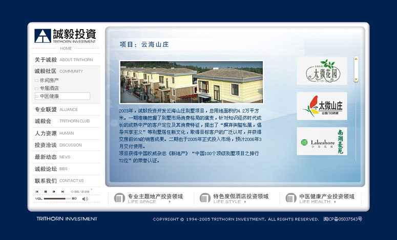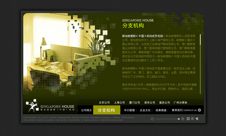 我们设计的第一个房地产项目网站,全国最大的SHOPPIN MALL,所以非常用心打造,全Flash动感页面最终赢得了客户的赞赏。